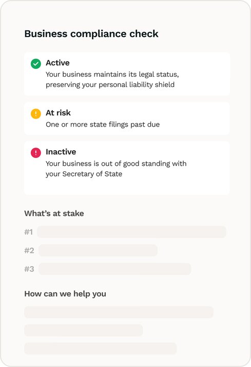 Staying compliant with your business’s filing and licensing requirements is essential to maintaining good standing, no matter your business type—LLCs, corporations, or nonprofits. With LegalZoom, navigating compliance is as simple as 1, 2, 3:
